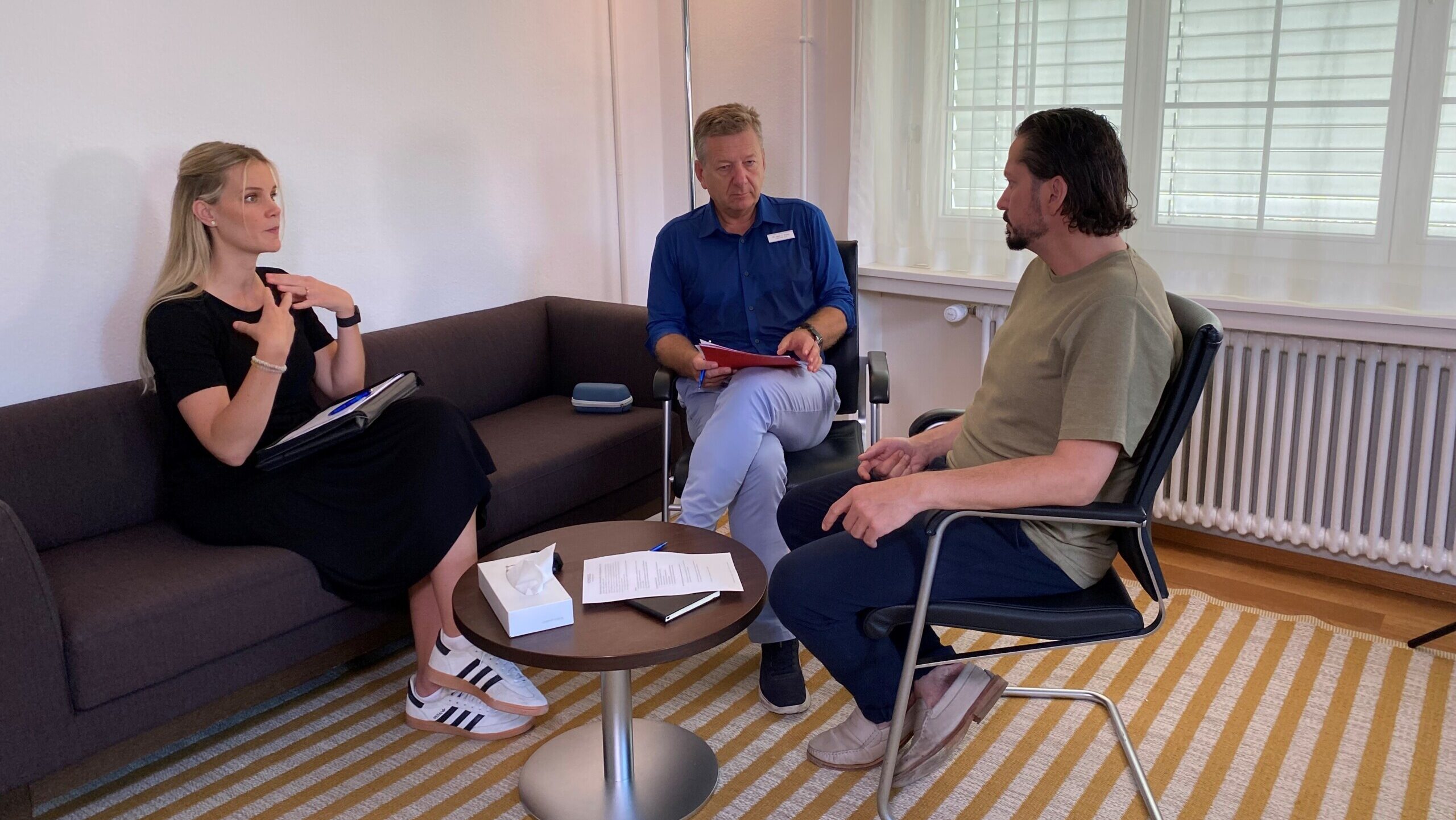 Im Film wird sichtbar, wie eng Ärztinnen und Ärzte, Psychologinnen und Psychologen, Pflegefachpersonen sowie Spezialtherapeutinnen und -therapeuten zusammenarbeiten. In regelmässigen interdisziplinären Sitzungen wird der Fortschritt reflektiert und die Behandlung fortlaufend angepasst.